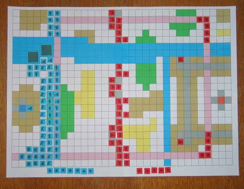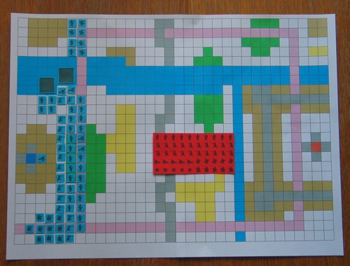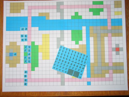 Wydruki jednostki_lewa_niebieski.pdf i jednostki_prawa_czerwony.pdf przed wycięciem jednostek można podkleić kartką z bloku technicznego lub sztywną tekturą w celu poprawy jakości żetonów.