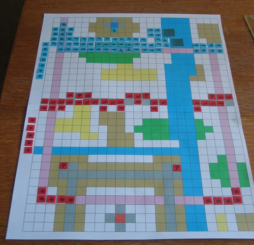 Wydruki jednostki_lewa_niebieski_rolin.pdf i jednostki_prawa_czerwony_rolin.pdf przed wycięciem jednostek można podkleić kartką z bloku technicznego lub sztywną tekturą w celu poprawy jakości żetonów.